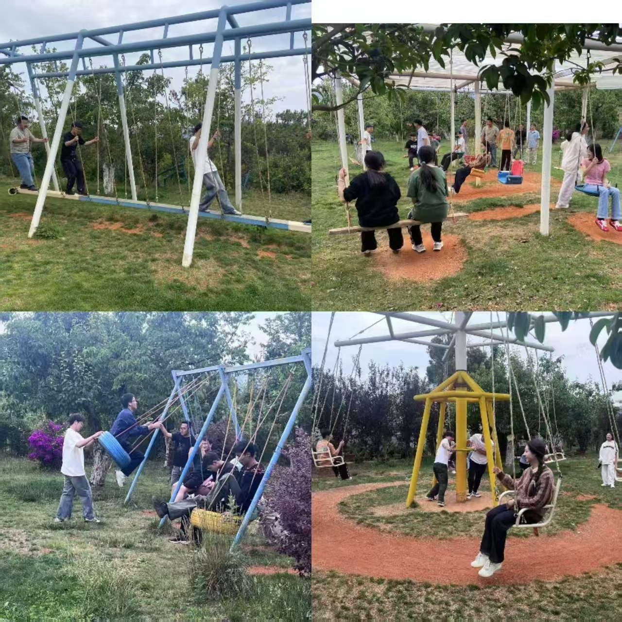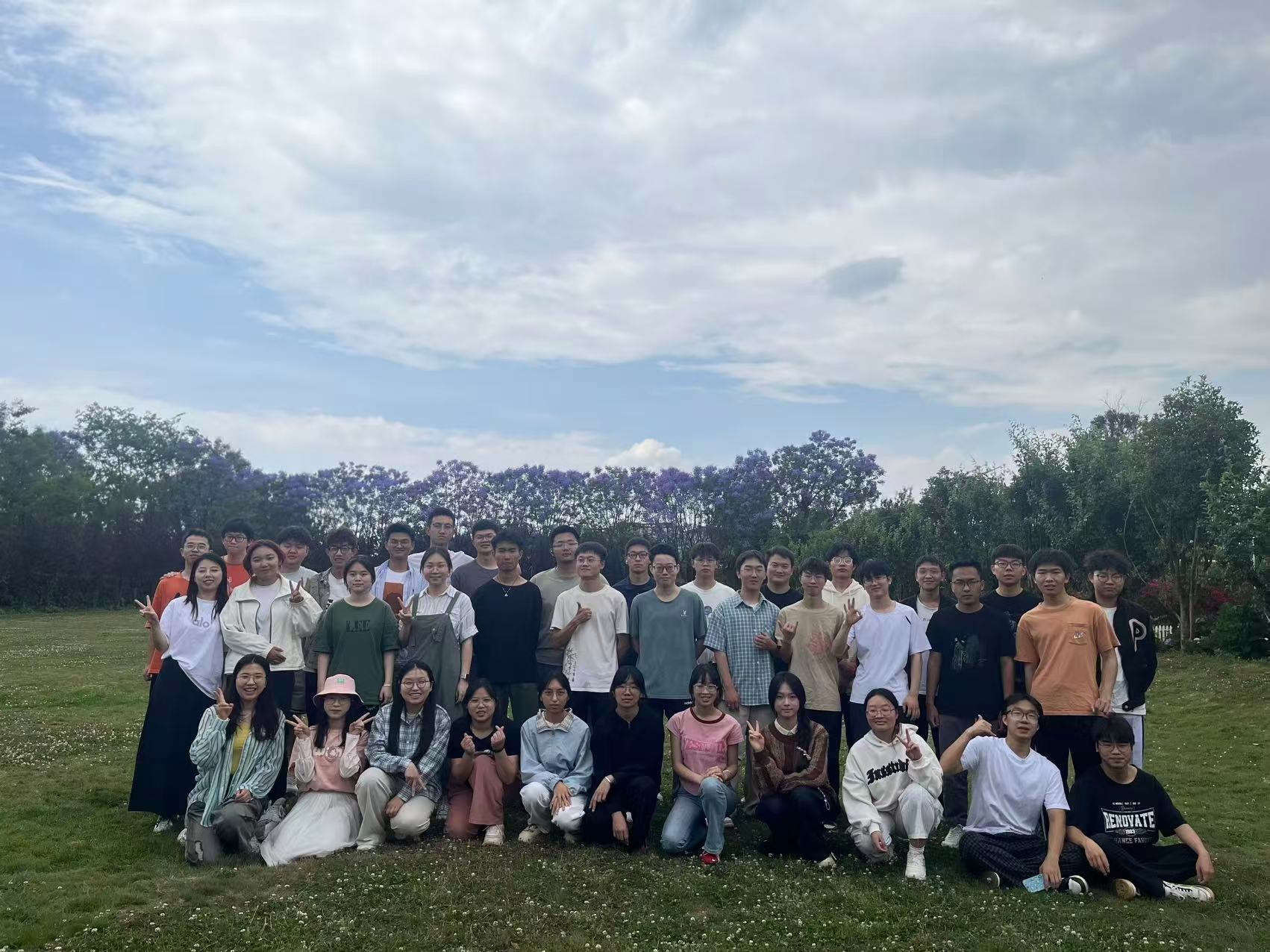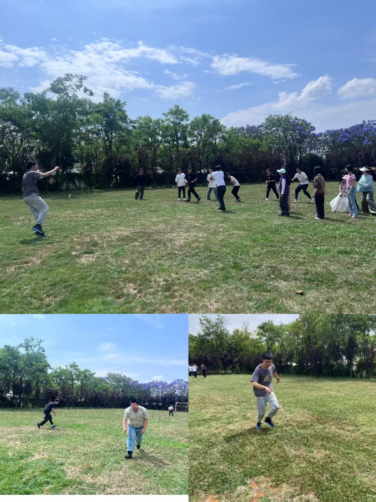 集体活动结束后,同学们还进行了自由活动,有的打秋千、有的进行棋牌游戏,知合园里到处洋溢着青春的气息。结束的合影留念,镜头中一张张笑脸与烂漫的蓝花楹交相辉映,为初夏的美丽增添了一抹亮色。胡老师总结道:“医学不仅是严谨的科学,更需要人文关怀与团队精神。期待同学们将这份凝聚力延续到学习和未来的职业生涯中。”