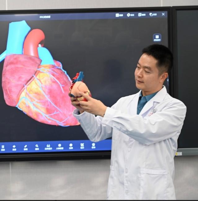 作为课程负责人,张老师承担《系统解剖学》《局部解剖学》《神经解剖学》等多门核心课程,致力于探索虚拟仿真技术在医学教学中的应用,推动解剖教学向数字化、智能化发展。他主持建设了国内先进水平的解剖教学平台,实现“数字解剖”与“现实解剖”深度融合,不仅提高了教学精准度,还缓解了人体标本资源有限的难题,使员工能够随时随地进行“虚拟”+“现实”混合式学习,从而提升实验教学质量和学习效率。