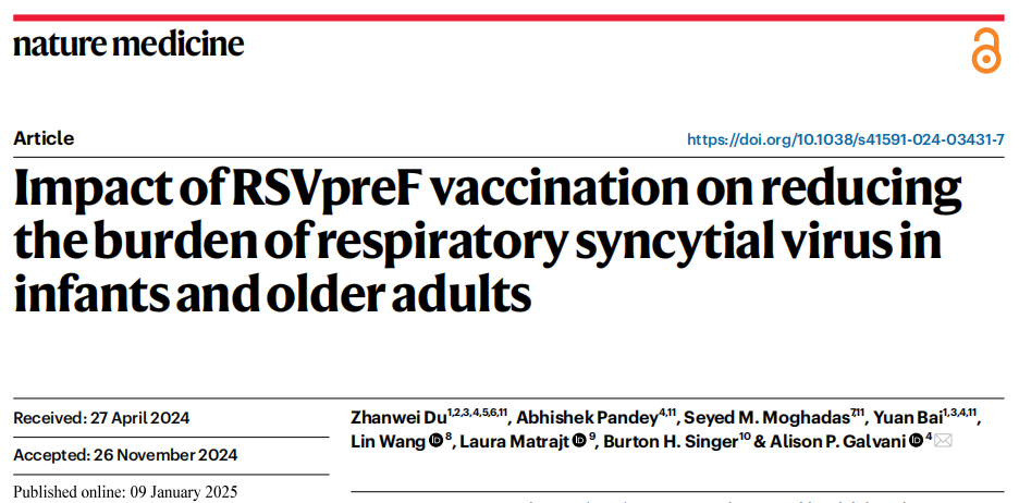 近日,威廉williamhill体育客座教授、兼职博导杜占玮领导的研究团队在国际顶级期刊Nature Medicine(2023 IF 58.7,JCR Q1)发表了一篇题为“Impact of RSVpreF vaccination on reducing the burden of respiratory syncytial virus in infants and older adults”的研究论文。这项研究展示了2023年上市的呼吸道合胞病毒疫苗 Abrysvo(RSVpreF疫苗)在全球13个高收入国家中,对于降低婴幼儿和老年人的住院和死亡率的积极效果,从而突显了RSV疫苗接种在公共卫生领域的预防和控制传染病方面的巨大价值。