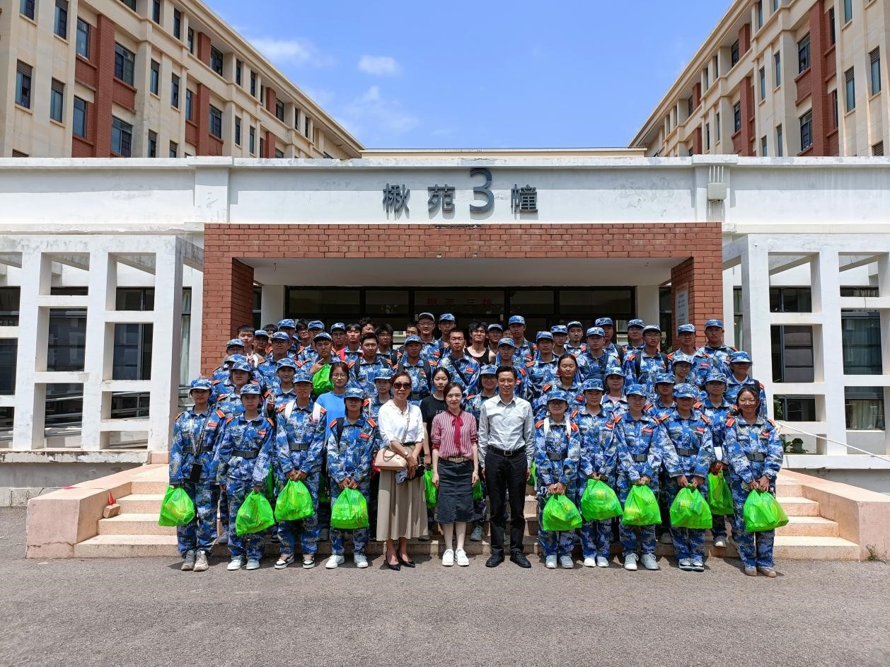 2024年9月6日,医公司党委书记李娅佳、副经理李宏亮、学工办主任胡艳芳及员工兼职辅导员付悦婷前往楸苑住宿区,看望慰问2024级军训新生,了解军训情况,激励员工要发扬吃苦耐劳的精神,以饱满的精神面貌和顽强的意志圆满完成军训任务。