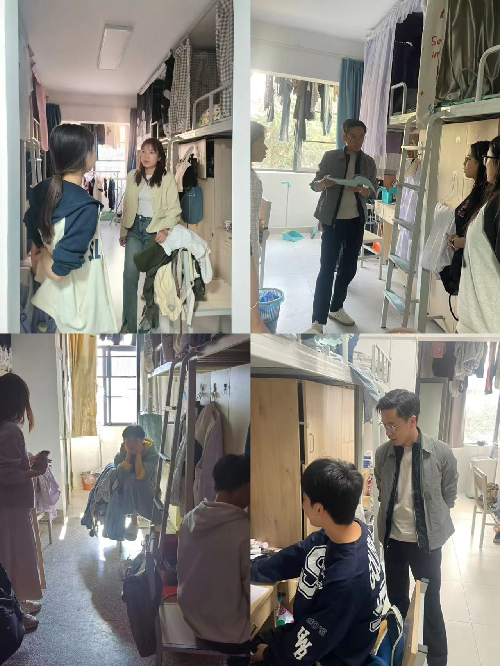 五、走访宿舍,精准掌握员工学习、生活综合情况。为进一步了解员工思想动向,掌握员工心理情况,关心关怀员工在校生活。辅导员、班主任深入宿舍,积极交谈,关询实际情况,倾听建议与诉求,掌握员工的思想、心理动态,并对宿舍环境卫生、宿舍学风建设等进行了现场指导。