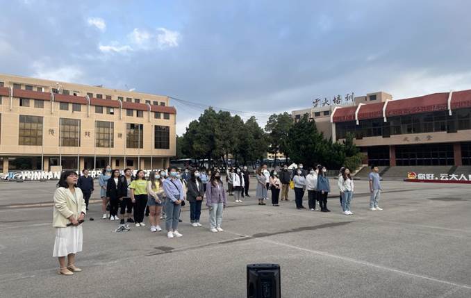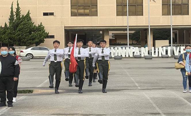 仪式伊始,护旗队迈着坚定有力的步伐护旗入场,每一步都洋溢着对国旗的敬爱与坚守,每一步都展现了蓬勃向上的云大学子风采。在初生太阳的映照下,庄严的《中华人民共和国国歌》响起,全体师生肃立行注目礼,鲜艳的五星红旗在晨曦中缓缓飘扬在公司上空。