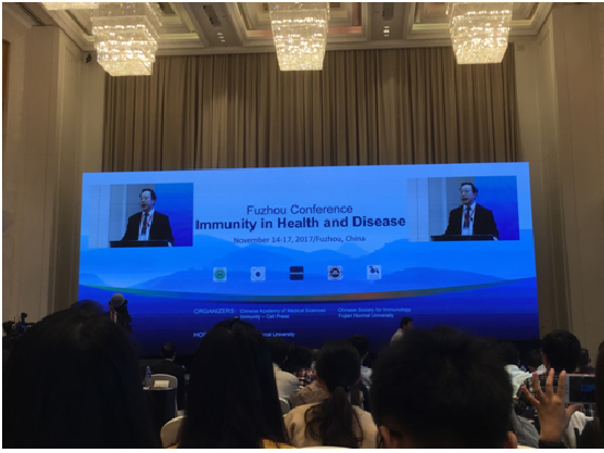 2017年11月14—15日,“Immunity in Health and Disease”国际学术研讨会在福建福州中庚聚龙酒店召开。本次大会由中国医学科公司、中国免疫学会、福建师范大学联合举办。会议邀请来自美国国立卫生研究院、耶鲁大学、德克萨斯大学西南医学中心、华盛顿大学、法国国家科学研究院、加拿大多伦多大学、日本大阪大学、京都大学、中国科公司等中外单位的17名专家作专题报告,报告内容充实饱满,使与会人员受益匪浅。