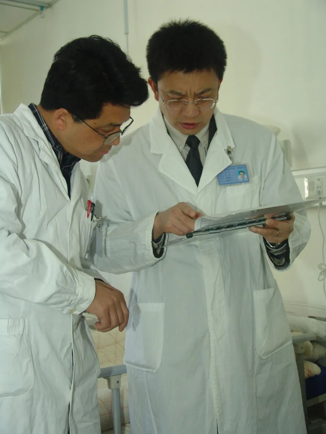 韦嘉(右)在昆医附一院工作时,指导下级医师诊疗工作