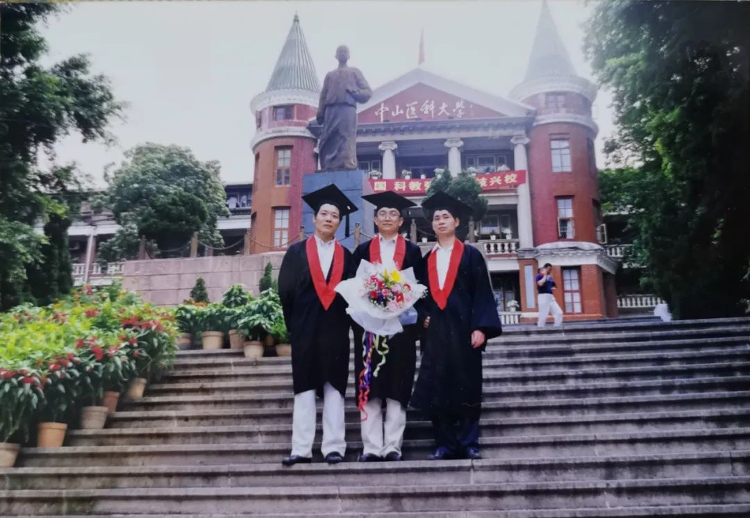 韦嘉(中)在中山医科大学获博士学位时和同学合影