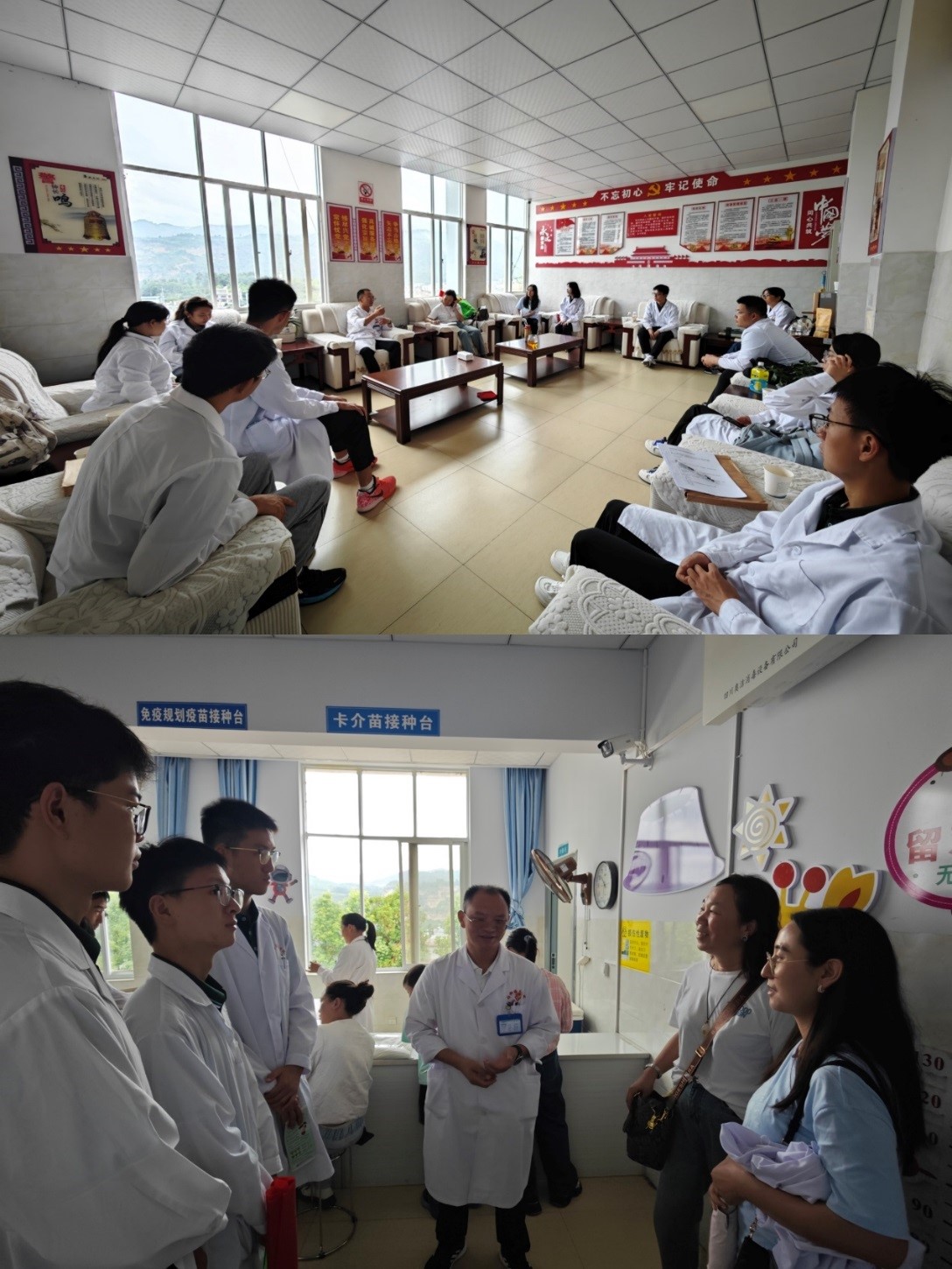 在公共卫生调研服务开展过程中,实践队走进杨柳镇卫生院,通过访谈参观了解卫生院建设概况、医疗服务内容和公共卫生管理现状。卫生院领导系统介绍了医院运行概况、科室建设特色、慢性病管理等内容。在孔垂仿经理的引导下,实践队逐一走访各个科室。在全科门诊,队员们观摩了慢性病诊疗流程;在中医治疗室内,针灸、推拿等传统疗法的临床应用场景,让员工直观理解“中西医协同”在基层的实践价值;住院病房内,队员们主动与患者家属交流,了解患者的就医体验和健康需求。通过参观调研,实践队深刻感受到健康中国战略在基层的生动实践。